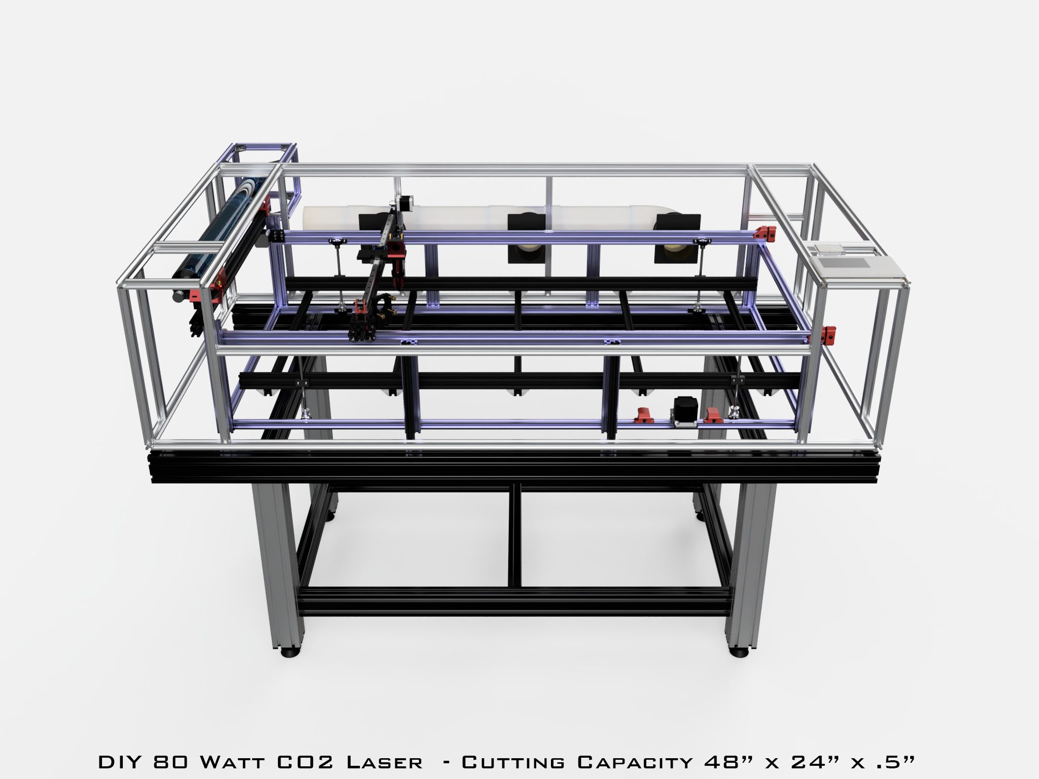 Here are some 3D renders of our DIY Laser Engraver project base frame project currently under development. We are utilizing extruded aluminum stock with a mixture of natural and anodized black for a particular aesthetic what we like. Large aircraft grade 8080 mm for the base legs and 8040 mm for the base frame construction. The laser base frame, laser inner chassis and laser outer shell all are made of T-Slot aluminum to allow for ease of construction. Also allows for the unit to be productized and sold as a kit if we choose to moving forward. T-slots and V-slots makes design changes or expansion in the machine fairly simple. The outer shell will be thin aluminum sheets with tinted polycarbonate panels. These renderings are pre-build, so some things will be changing along the way as certain physical realities present themself that were not so obvious in the modeling stage. Iteration is a normal prototyping condition.