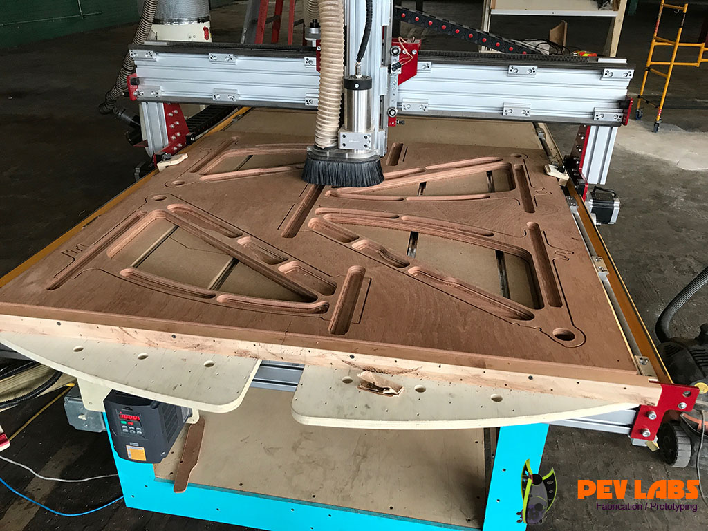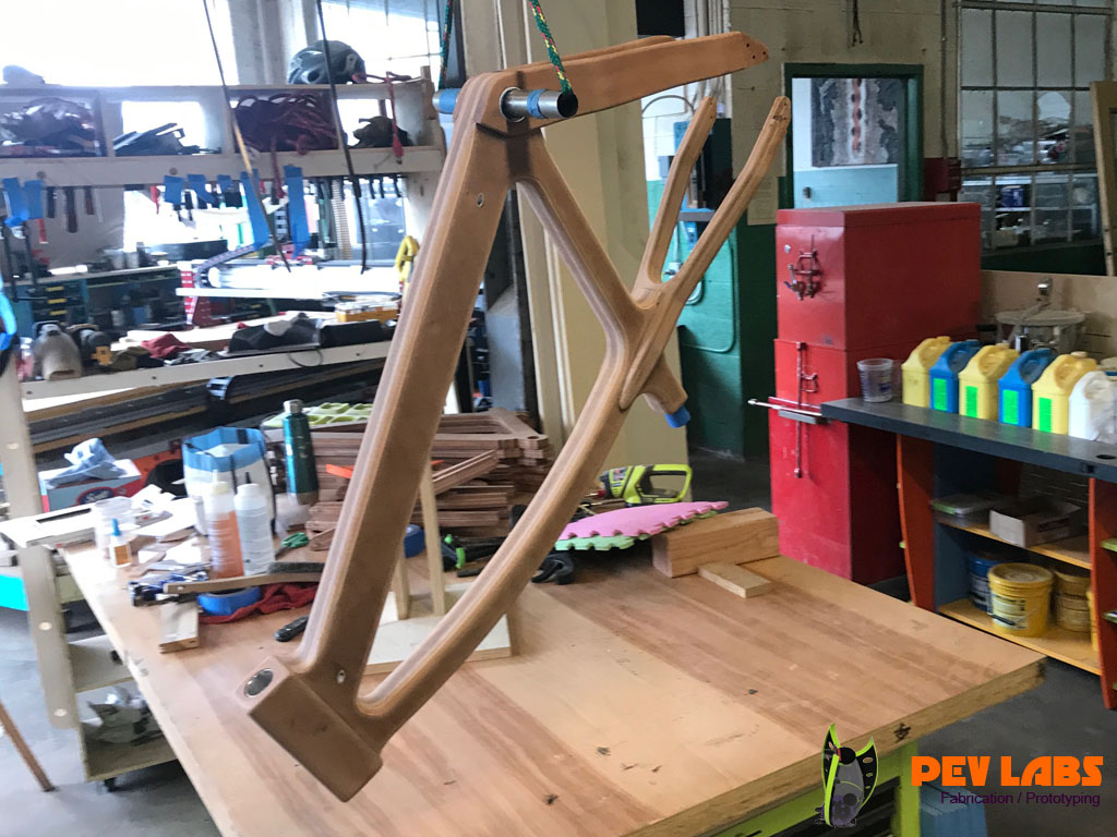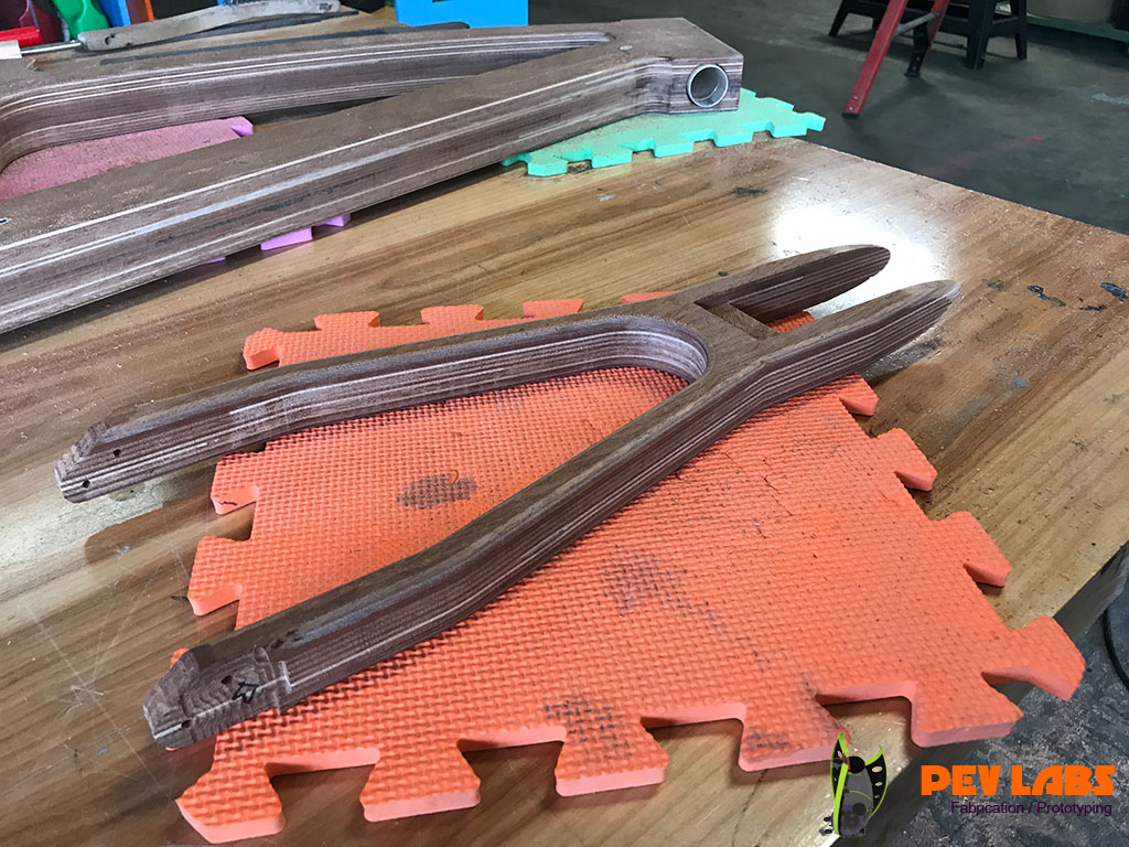 A visual overview of the many steps involved in prototyping version 5.xx of a handmade wooden bicycle. Here we are making one manual bike and three more electric wooden bicycles. This production run should yield four wooden sapelli bikes from one sheet of one inch thick custom produced plywood. Frames are Sapele ply, seat stay is Sapele ply, solid Sapelli chain stays and for the dropouts we custom CNC mill out of a sheet of 3/8 aluminum. Making Bikes in this bespoke fashion is fairly precise with accuracy and attention to details paramount. This project utilized Industrial Design, Digital Fabrication and Traditional Fabrication skills along with a bit of good old fashion Woodworking. This bike is an example of our on-demand manufacturing services. We can manufacture the products as the orders come in. Catalog of Images for Wooden Electric Bike Prototype Version 4 Here.